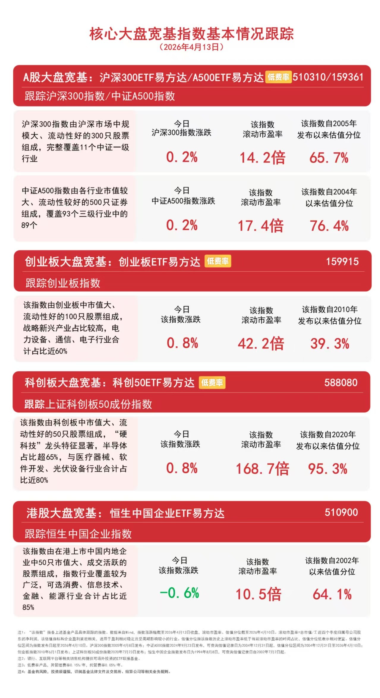 截至收盘,中证A500指数上涨0.2%,沪深300指数上涨0.2%,创业板指数上涨0.8%,上证科创板50成份指数上涨0.8%,恒生中国企业指数下跌0.6%。